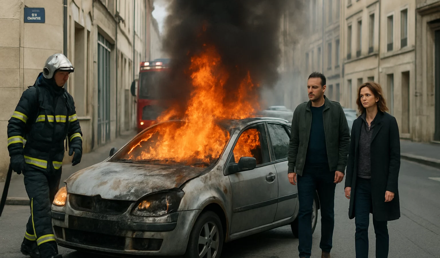 À l’arrivée des secours, un véhicule était entièrement embrasé sur la rue de Dole, provoquant un brasier et une fumée dense à hauteur du quartier.